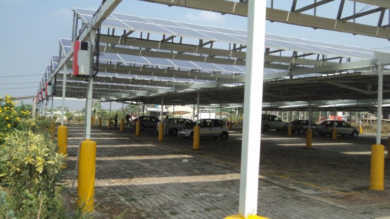 Solar power is the conversion of energy from sunlight into electricity, either directly using photovoltaics (PV), indirectly using concentrated solar power, or a combination. Concentrated solar power systems use lenses or mirrors and solar tracking systems to focus a large area of sunlight into a small beam. Photovoltaic cells convert light into an electric current using the photovoltaic effect.